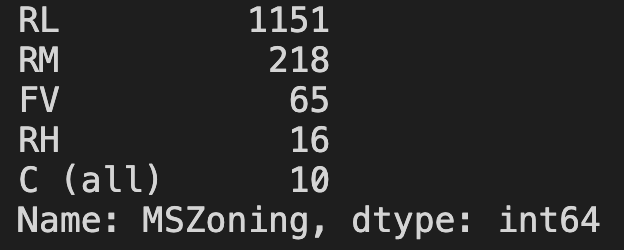 #对于MSZoning这种文字类别的特征,可以利用pandas的计数函数来观察一下