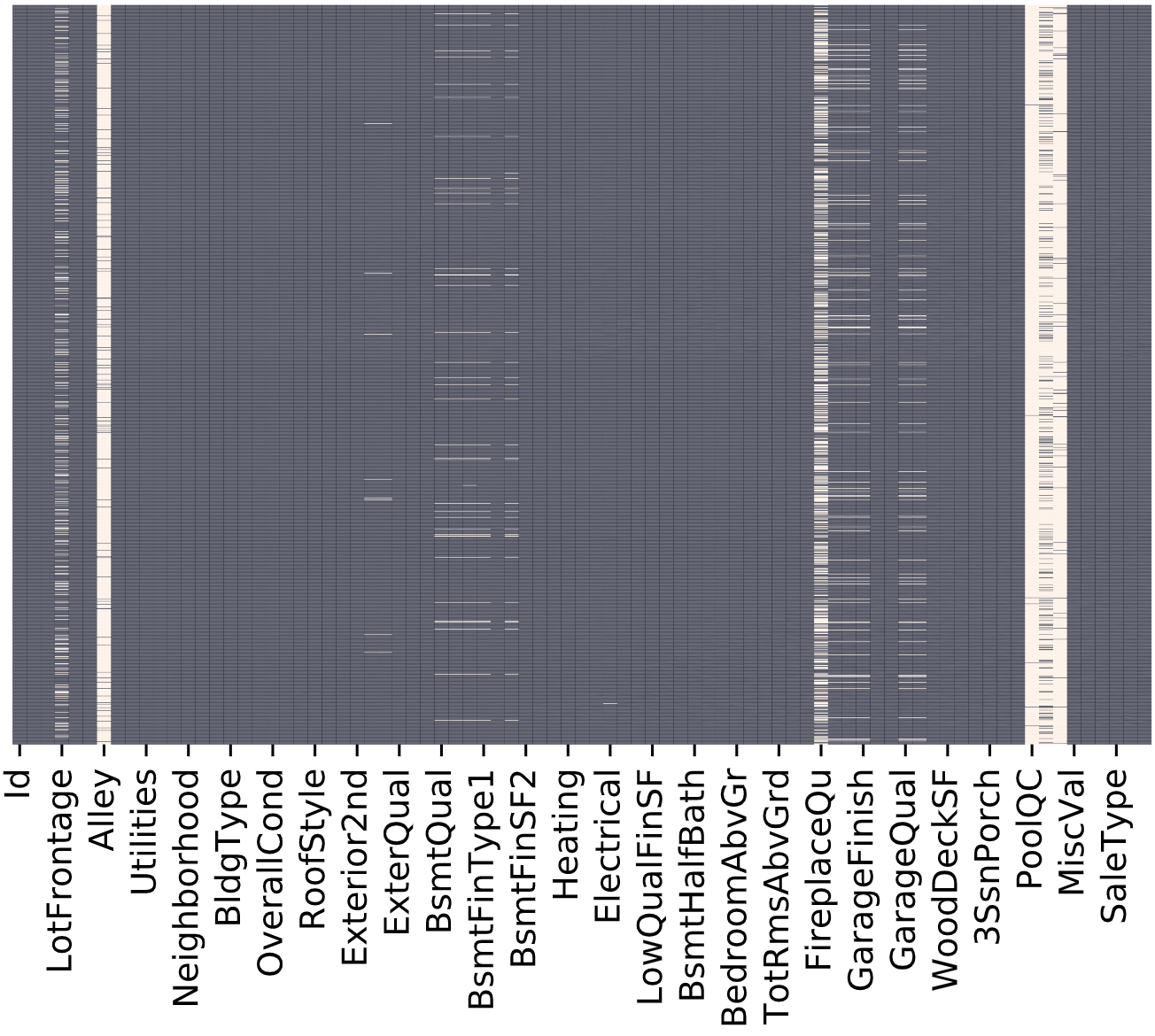 Id MSSubClass MSZoning LotFrontage LotArea Street Alley LotShape LandContour Utilities LotConfig LandSlope Neighborhood Condition1 Condition2 BldgType HouseStyle OverallQual OverallCond YearBuilt YearRemodAdd RoofStyle RoofMatl Exterior1st Exterior2nd MasVnrType MasVnrArea ExterQual ExterCond Foundation BsmtQual BsmtCond BsmtExposure BsmtFinType1 BsmtFinSF1 BsmtFinType2 BsmtFinSF2 BsmtUnfSF TotalBsmtSF Heating HeatingQC CentralAir Electrical 1stFlrSF 2ndFlrSF LowQualFinSF GrLivArea BsmtFullBath BsmtHalfBath FullBath HalfBath BedroomAbvGr KitchenAbvGr KitchenQual TotRmsAbvGrd Functional Fireplaces FireplaceQu GarageType GarageYrBlt GarageFinish GarageCars GarageArea GarageQual GarageCond PavedDrive WoodDeckSF OpenPorchSF EnclosedPorch 3SsnPorch ScreenPorch PoolArea PoolQC Fence MiscFeature MiscVal MoSold YrSold SaleType SaleCondition SalePrice